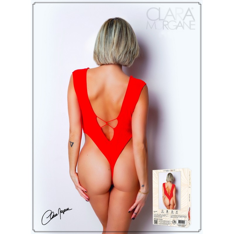 Ce body Rouge, Clara Morgane, effet passion et forme vertigineuse. Le décolleté est plongeant que ce soit dans le dos ou sur le devant.