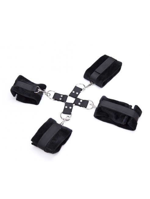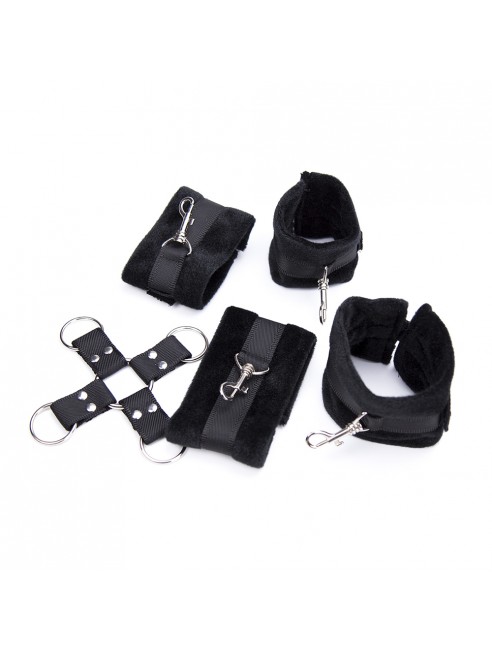 Ce kit est composé de 4 menottes très douces pour un confort optimal avec mousqueton amovibles.