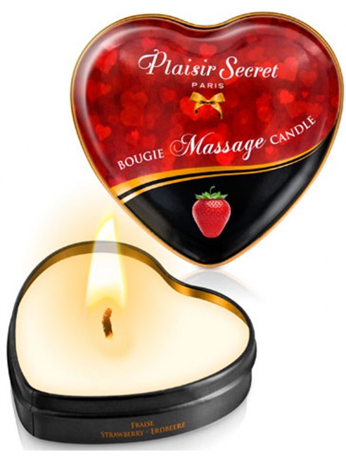 Quoi de plus beau et sensuel que la lueur d’une bougie ? Cette très belle bougie à la fraise est spécialement étudiée pour le massage glamour. Une forme évocatrice d’amour en forme de coeur d’une boîte métallique et un parfum subtil de fraise. Allumez cette bougie gourmande à la fraise et laissez la cire fondre quelques minutes qui va se transformer en huile de massage délicieuse. Versez l’huile tiède fraise dans votre main et massez délicatement la peau de votre partenaire qui va libérer une douce fragrance de fraise, un vrai jardin d’été.