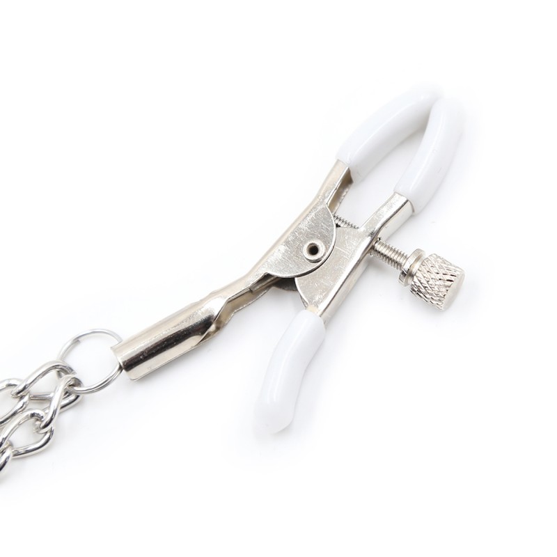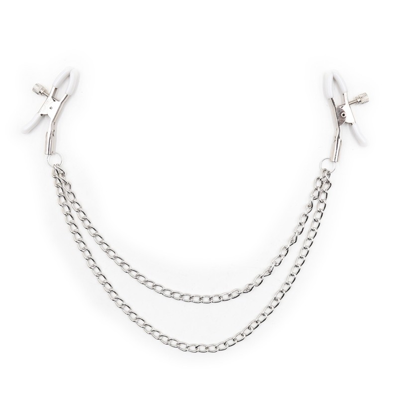 Pinces à seins double chainettes, réglables en pression de pincement.